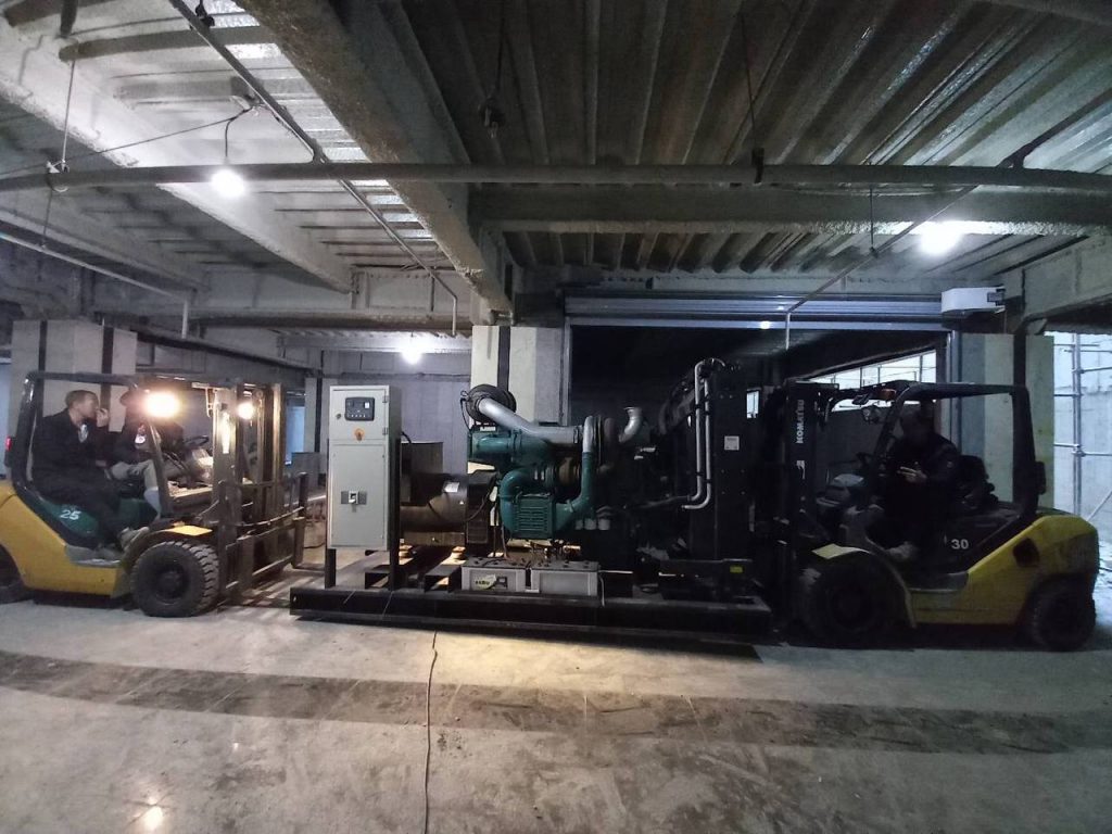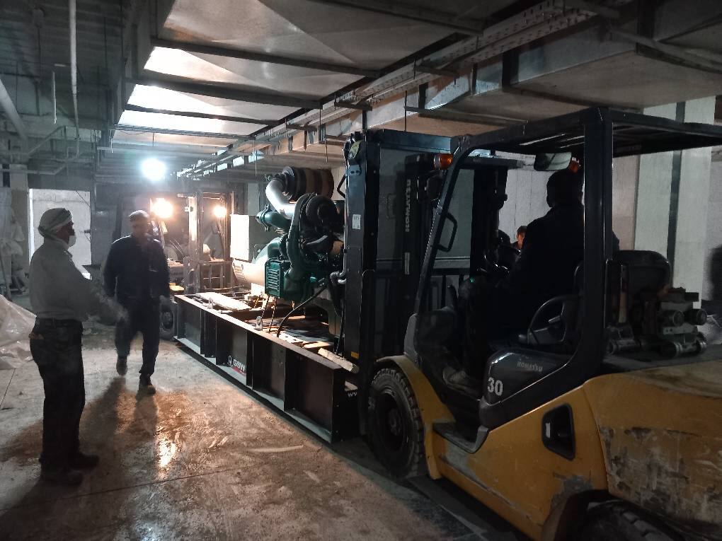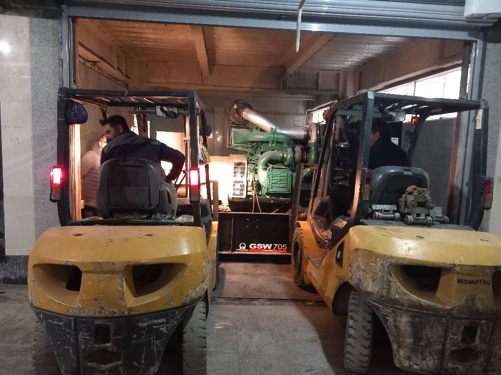 پروژه اداره گاز منطقه٣ (ساختمان جدید) حمل ۴دستگاه ژنراتور به تناژ۵٣٠٠ کیلو گرم به وسیله جرثقیل های ٧تن و تخلیه در محل کارگاهی جدید ساختمان و انتقال ژنراتورها از طبقه همکف از محل وید به طبقه منفی ۴ با استفاده از جرثقیل سنگین و حمل و جانمایی ژنراتورهای به وسیله لیفتراک های کوماتسو در سکوهای اتاق تاسیسات ساختمان جدید اداره گاز منطقه